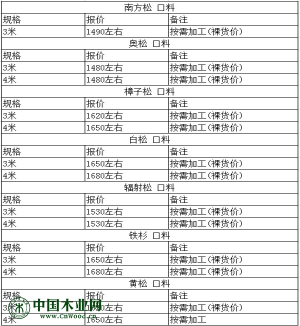 天津地區最新木材報價【2018年11月30日】